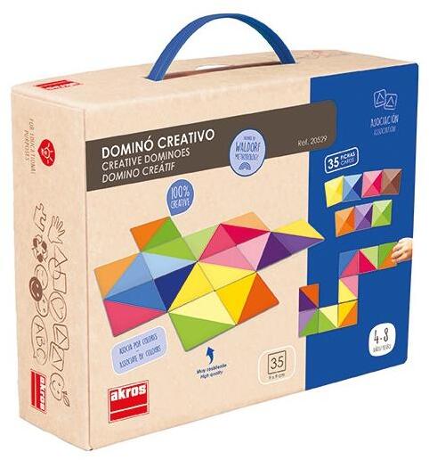 Ez az ötletes és kreatív dominó négyzet alakú kártyákból áll. A játék 28 kétszínű dominóból és 7 úgynevezett „gyémánt dominó kártyából áll. A kártyák mérete 9 x 9 cm. Vastag, ellenálló kartonból készült, nagyon tartós és kiváló minőségű. DOMINÓ kártyák: kétszínű kártyákGYÉMÁNT kártyák:. Ezek útmutató kártyák, amelyek megmutatják az azonos színű, négy különböző árnyalatot, amelyek a dominóban társíthatóak. 1. Klasszikus dominó kártyaként is szolgálhatnak vagy az asztalon is maradhatnak útmutatóként 2. Egy színes csoport lezárásaként is szolgálhatnak, ha Kreatív dominót játszunk. Az Európai Unió szabványainak megfelelő termék, CE-minősítéssel.