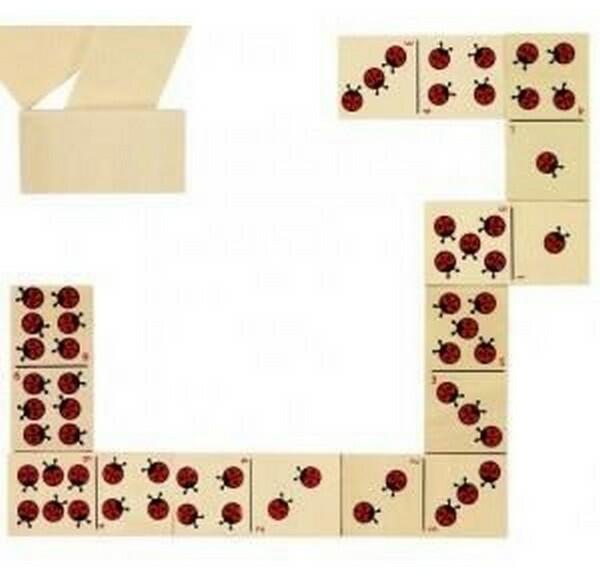 Klasszikus dominójáték vidám katicamintával. Egy domio mérete: 3x6cm.
